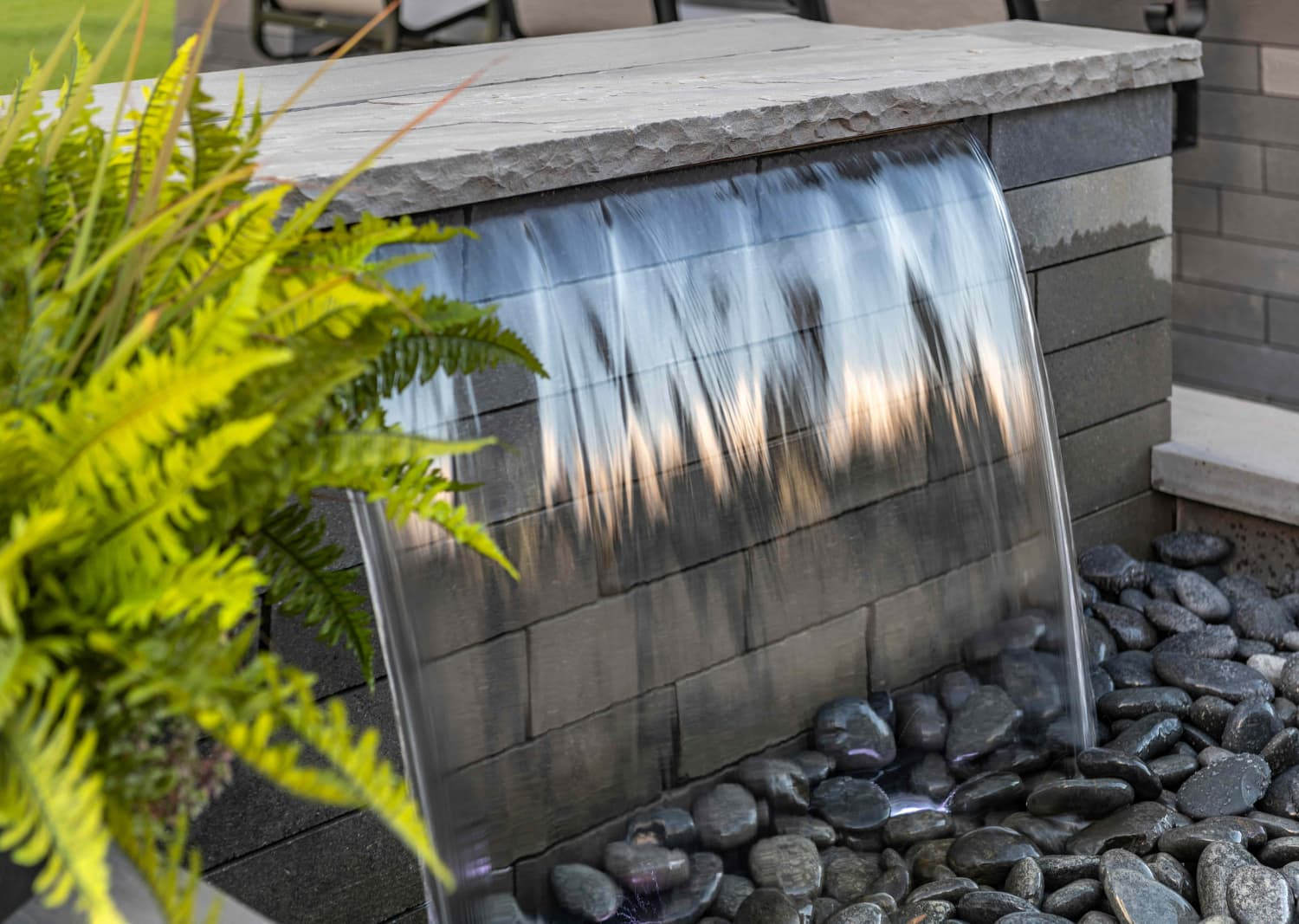 Water wall features are a modern look that provides a unique visual for any landscape. This water feature is also the easiest to maintain and upkeep.