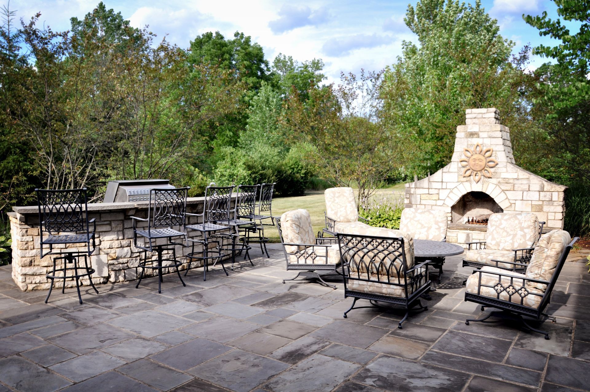 Freeze and thaw cycles, deicing salts, and heavy rain can all affect patio performance. Materials like pavers and natural stone typically handle Midwest weather the best.